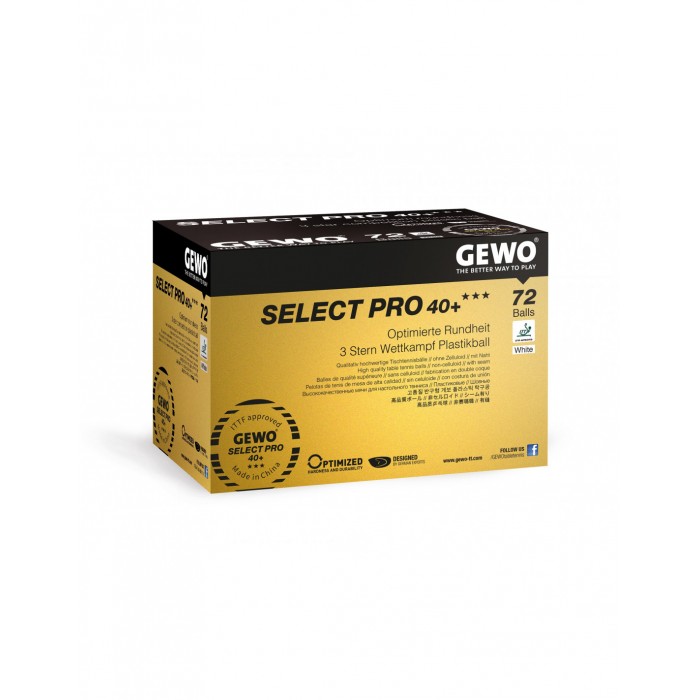 Wettkampfball,Kunststoff abs , mit Naht. Für mehr Sicherheit. Der GEWO Select Pro 40+ *** Ball garantiert eine hohe und langlebige Ballqualität, gleichbleibende Ballrückpralleigenschaften und eine deutlich längere Lebensdauer im Vergleich zu älteren Ballgenerationen. Wir wenden im Herstellungsprozess die strengsten Auswahlmethoden an, um eine einheitliche Wandstärke und -härte zu gewährleisten, was zu einer verbesserten Haltbarkeit und optimierten Spieleigenschaften führt. Von der ITTF zugelassener Premium-Wettkampfball;