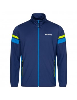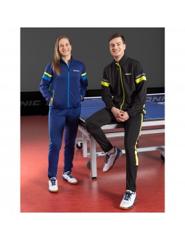 Das warme, dehnbare Stretchterry-Material bietet viel Bewegungsfreiheit beim Aufwärmen. Jacke und Hose mit kontrastfarbenen Einsätzen und zwei Seitentaschen mit Reißverschluss. Hose mit elastischem Bund mit innenliegendem Zugband und Zipper-Beinöffnung ohne Bündchen.