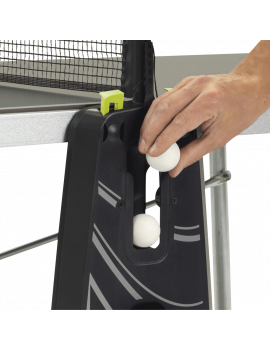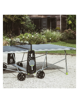 The leisure play quality is ensured by 4 mm thick laminated panels and 40 mm thick frames. These materials provide an optimal playing experience. In terms of durability, the equipment is made from ultra-durable materials and comes with a 10-year warranty, along with a 20-year repairability guarantee. To ensure user safety, each setup is equipped with 8 locking points and 2 brakes. The equipment also includes a foldable net, adjustable in height and tension, as well as storage for balls (x4) and rackets (x2), providing a comprehensive and secure gaming experience.